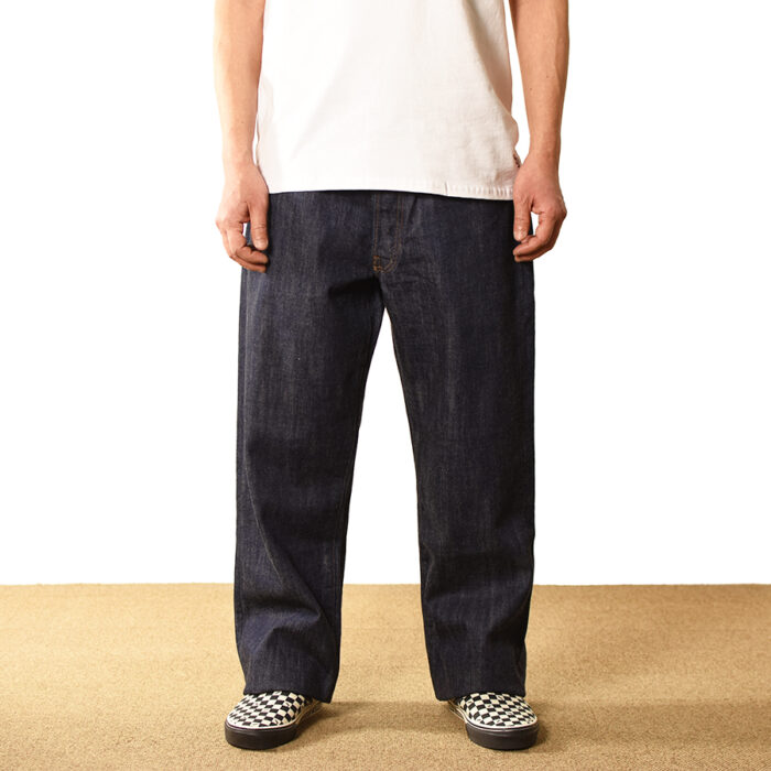 リラックスフィットの550をイメージしながら501をオーバーサイズで穿いたペインターパンツのようなワイドシルエットが特徴。