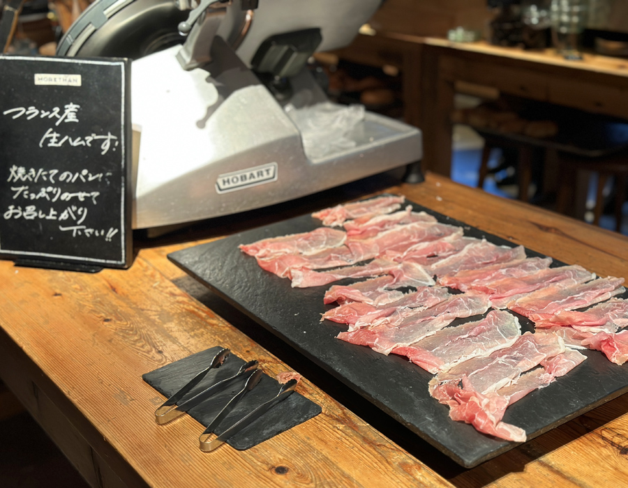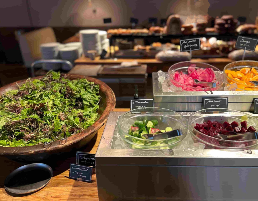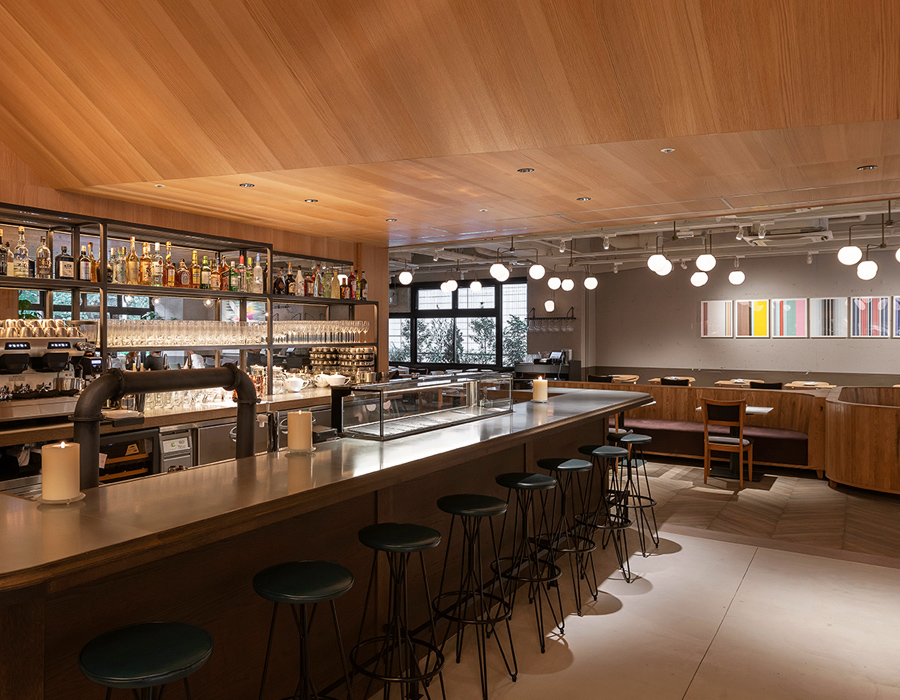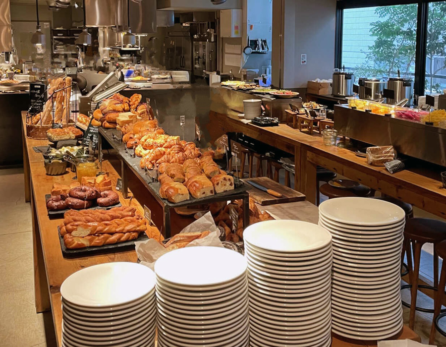 スタイリッシュなデザイナーズホテル「THE KNOT TOKYO Shinjuku」内にあり、夜はスペイン料理をベースにしたラウンジ、昼は併設の人気ベーカリー「MORETHAN BAKERY」の焼き立てパンやサラダ、タパスが頂けるランチビュッフェとなっています。