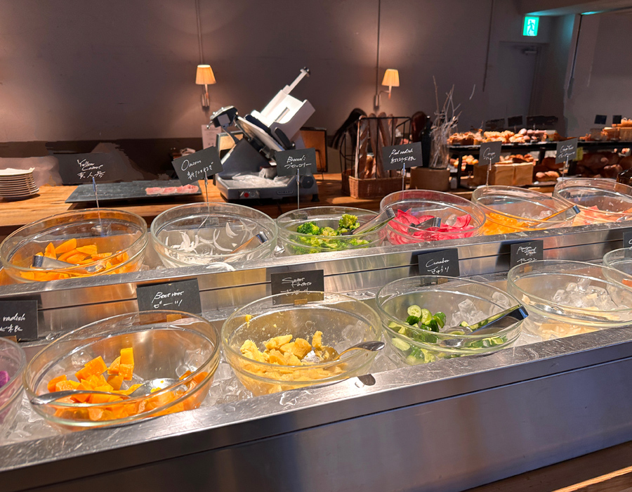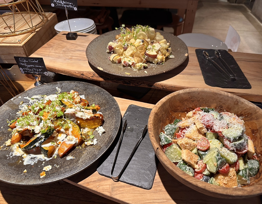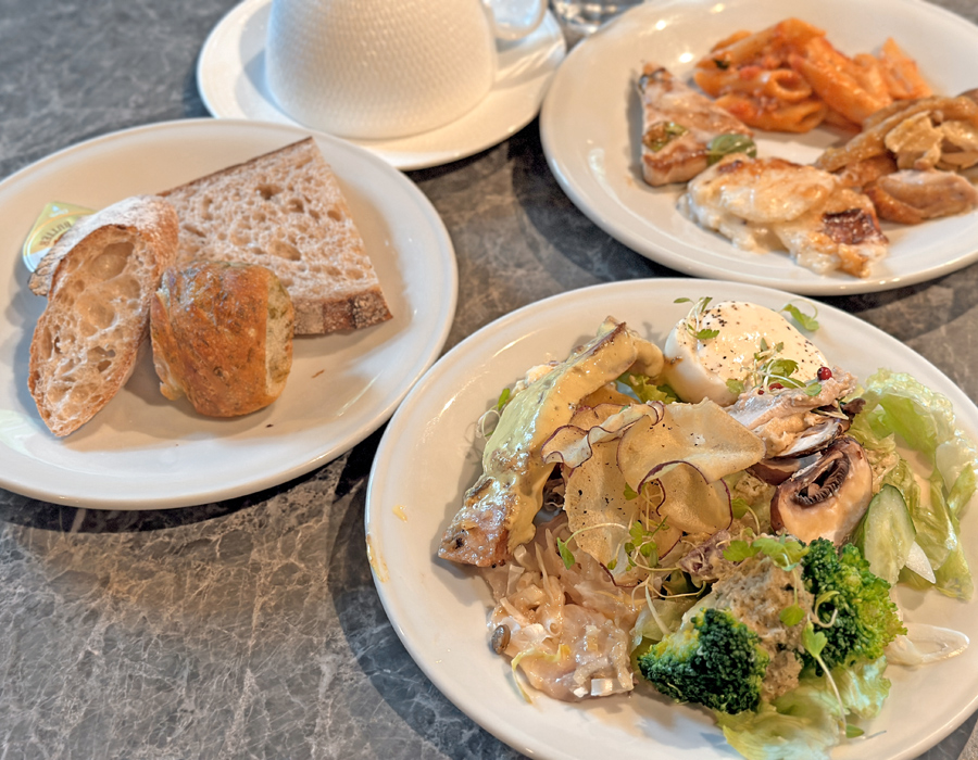 全て写真に収めることは出来ませんでしたが、生ハムやカルパッチョ、お肉の香草焼きにパスタなどビュッフェの内容はかなり充実しています。