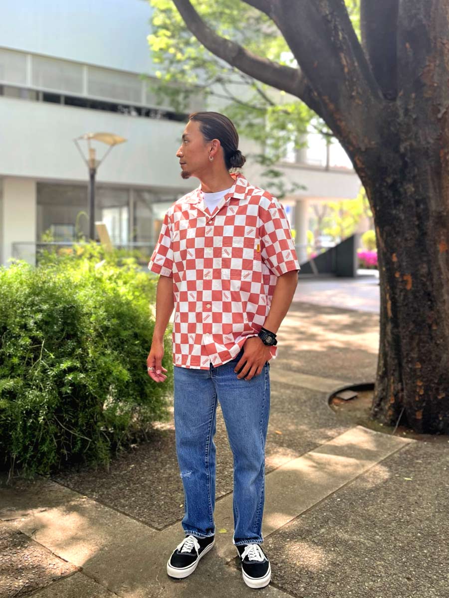 大好きなチェッカーに無地Tの組み合わせ。青白のチェッカーがインパクトあるので他は抑え目にしてみました。