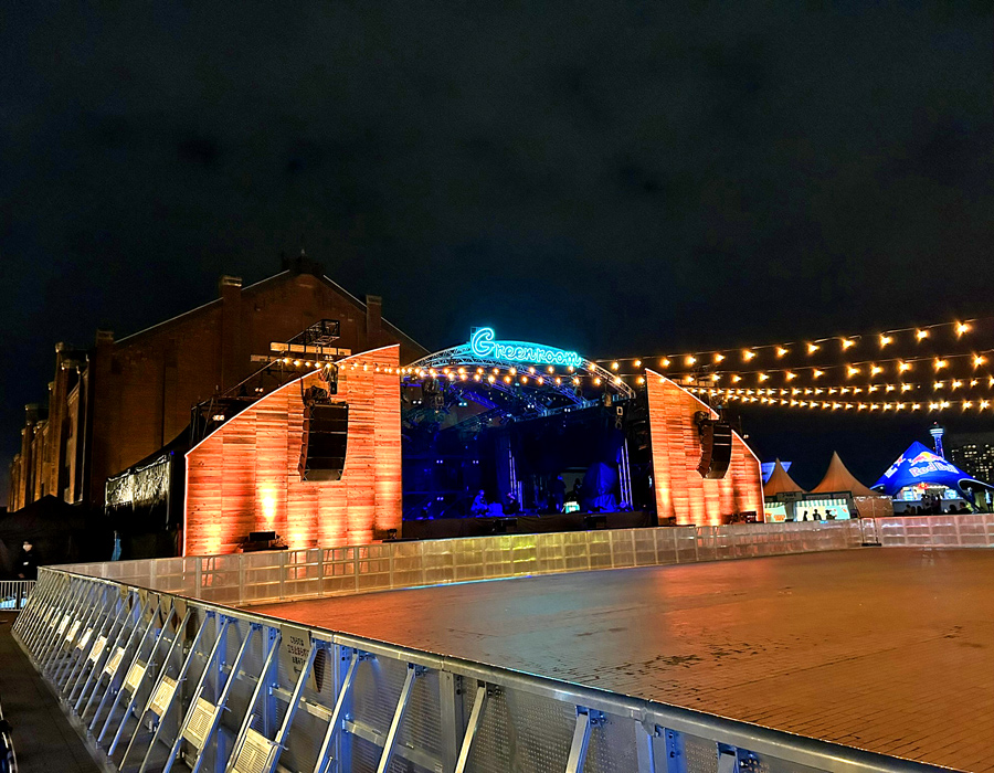 ブースの目の前にあったREDBRICKステージ。夜にはライトアップがとても綺麗です。