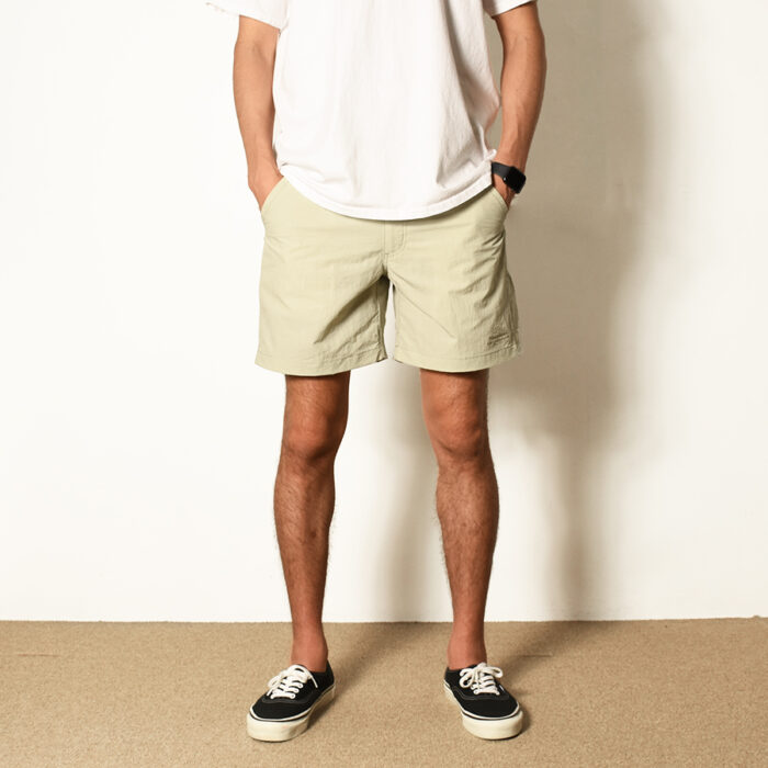 丈夫でストレッチ性に優れたコーデュラナイロンツイル生地を使用し、ワークショーツをベースとしながらクセなく穿きやすいベーシックなシルエットが特徴です。
