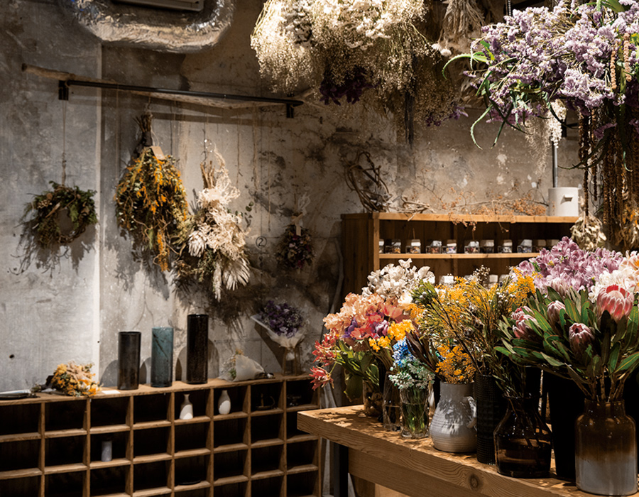 センスの良いブーケやポプリ、ディフューザーなど揃っているので、洒落たプレゼントを探している時にも良さそうです。