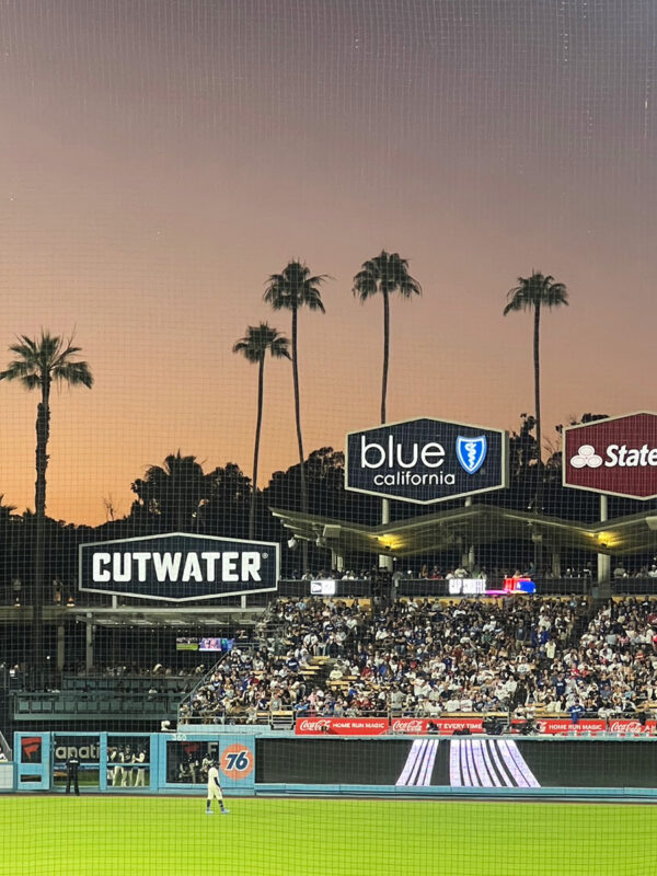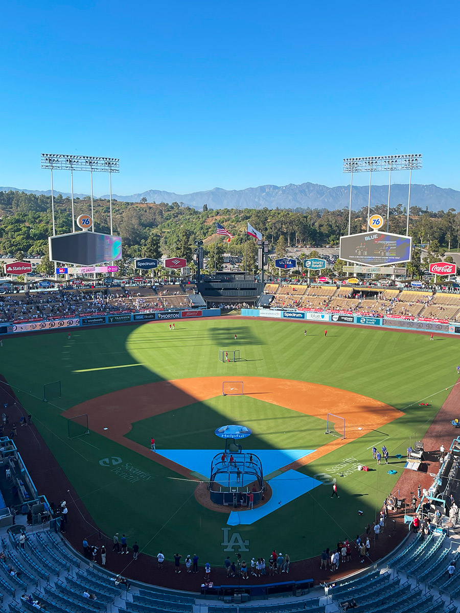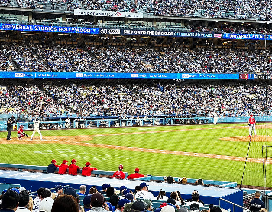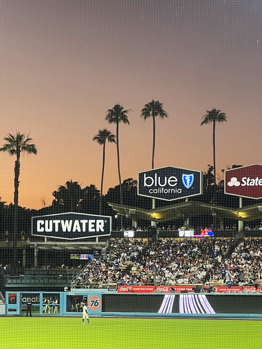 ドジャースタジアムの雰囲気がとにかく素晴らしくて、六角形のサインボードとパームツリーがとても印象的でした。