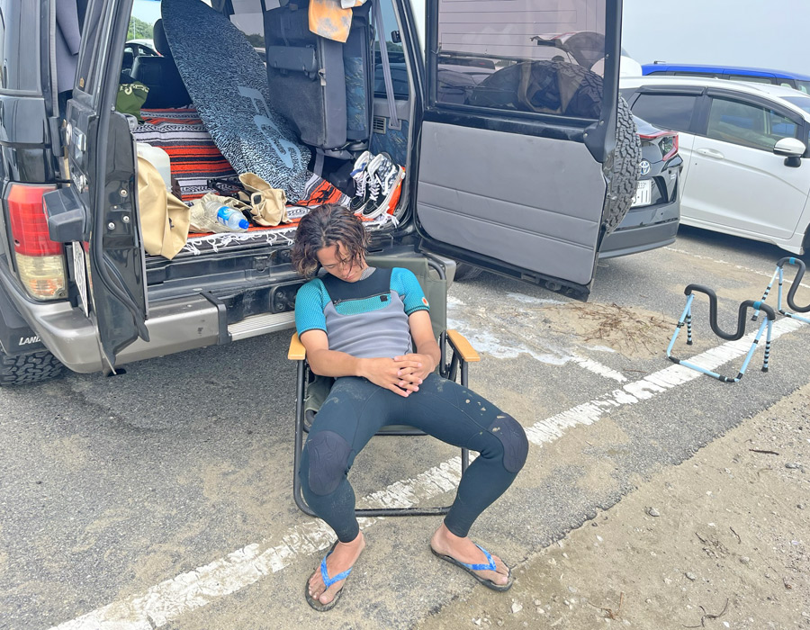半年ぶりのサーフィンだったらしく、さすがに疲れきっていました。