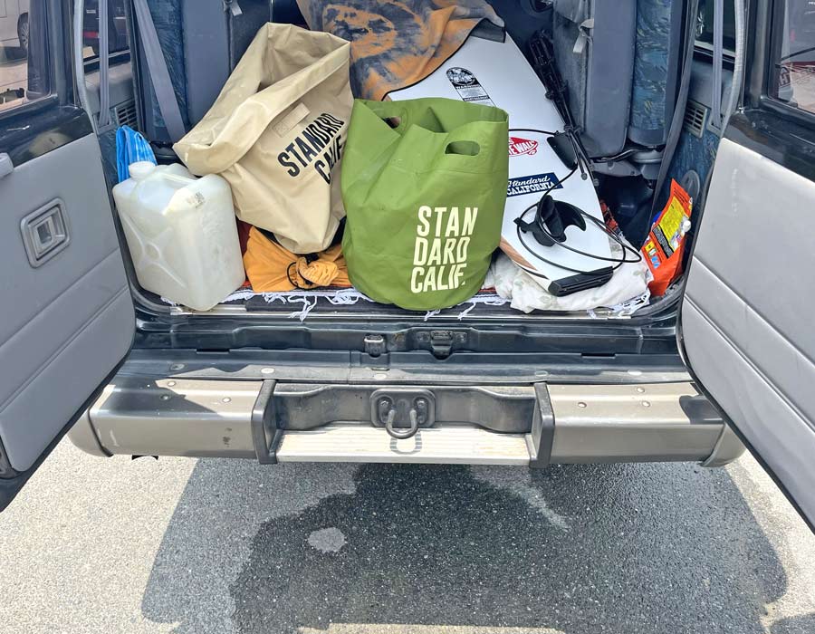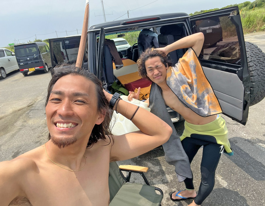 ポイントへ到着しウエットスーツに着替えていると、いつも一緒に海へ行く仲間が。