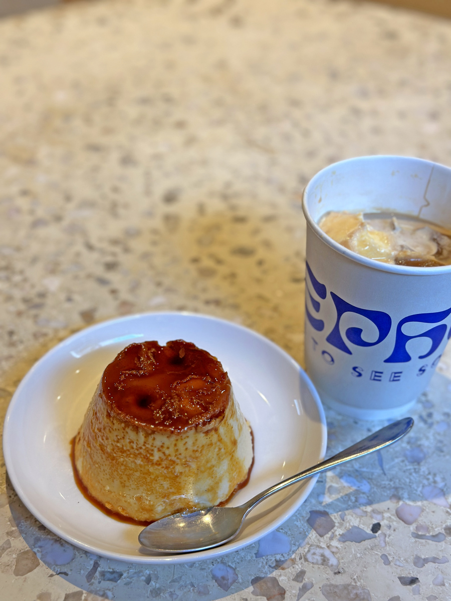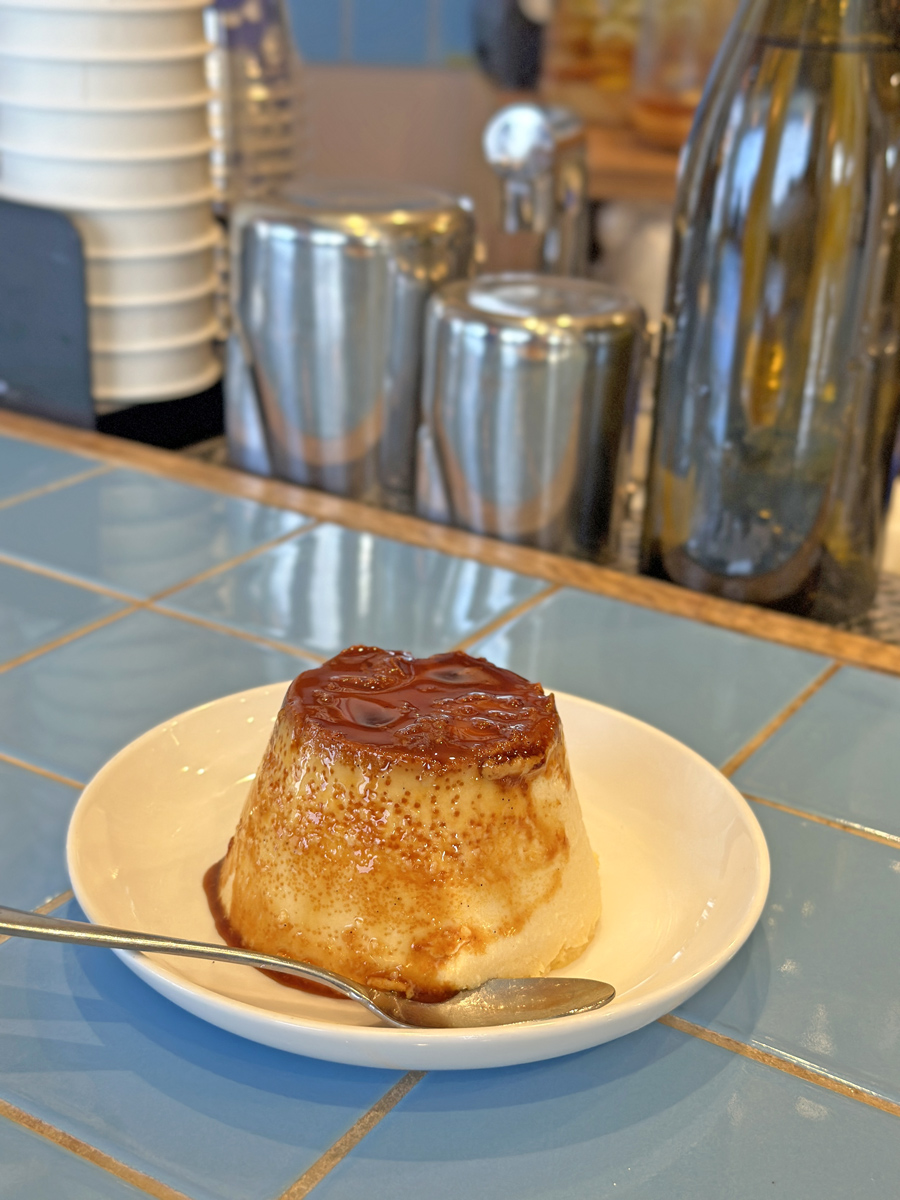 マスカルポーネとクリームチーズを使った固めプリンとのこと。