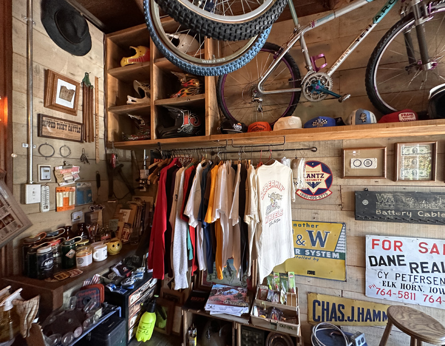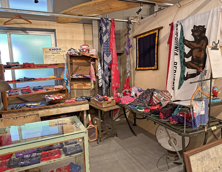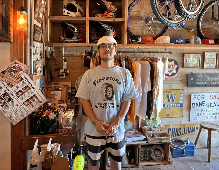 アメリカで買い付けてきた雑貨やセレクトしたアパレル、自身のブランドのTシャツなどが並んでいます。