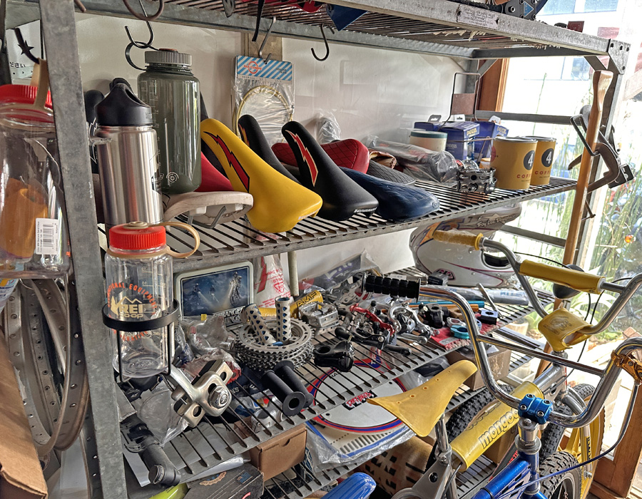 ここにはケンジ君が手掛けるブランドだけでなく、海外から集めてきたヴィンテージフレームやパーツが所狭しと。