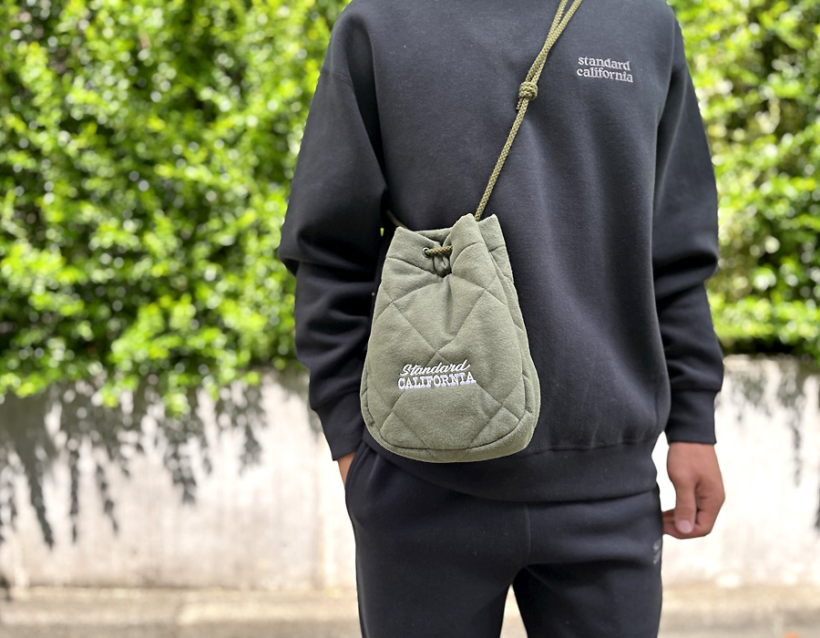 バッグはHand Light別注の巾着ショルダーバッグ。