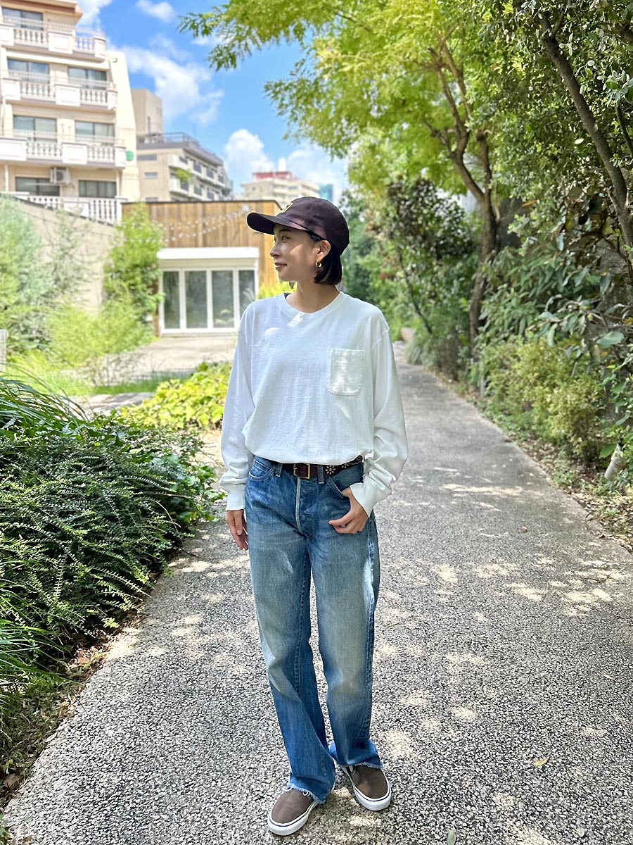 9月はロンTやスウェットなどが続々と登場しますが、今回は何にでも合わせられる無地のロンTを着てみました。