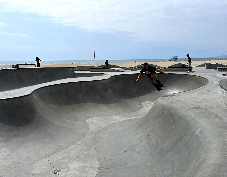 ここの海岸沿いではスケボーやインラインスケート、自転車、筋トレ、ダンスなど、思い思いのアクティビティーに興じる人がたくさんいます!