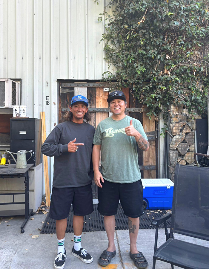 帰りにはお土産でkomyさんとお揃いのCALIFOLKSのCAPをプレゼントして頂き、記念に1枚写真を撮っていただきました!