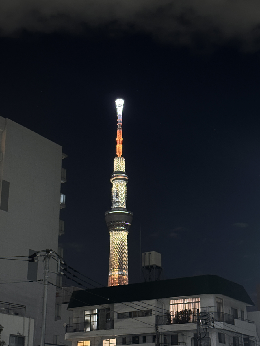 帰りはライトアップされたスカイツリーを見ながら帰路に。
