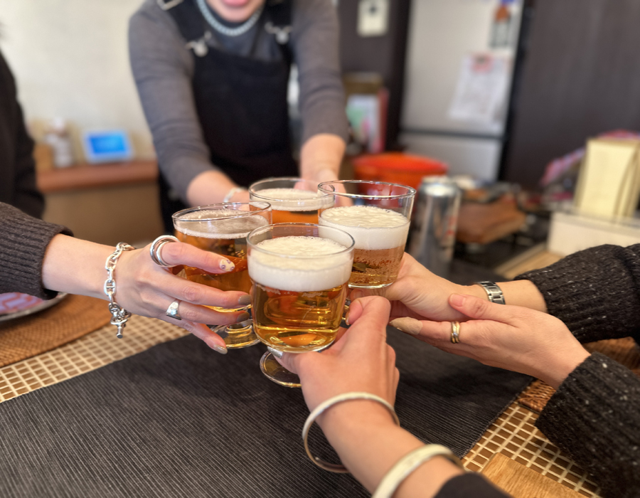 お酒からおつまみまで一通り提供し、早々と座って後は呑んで食べるだけ。笑