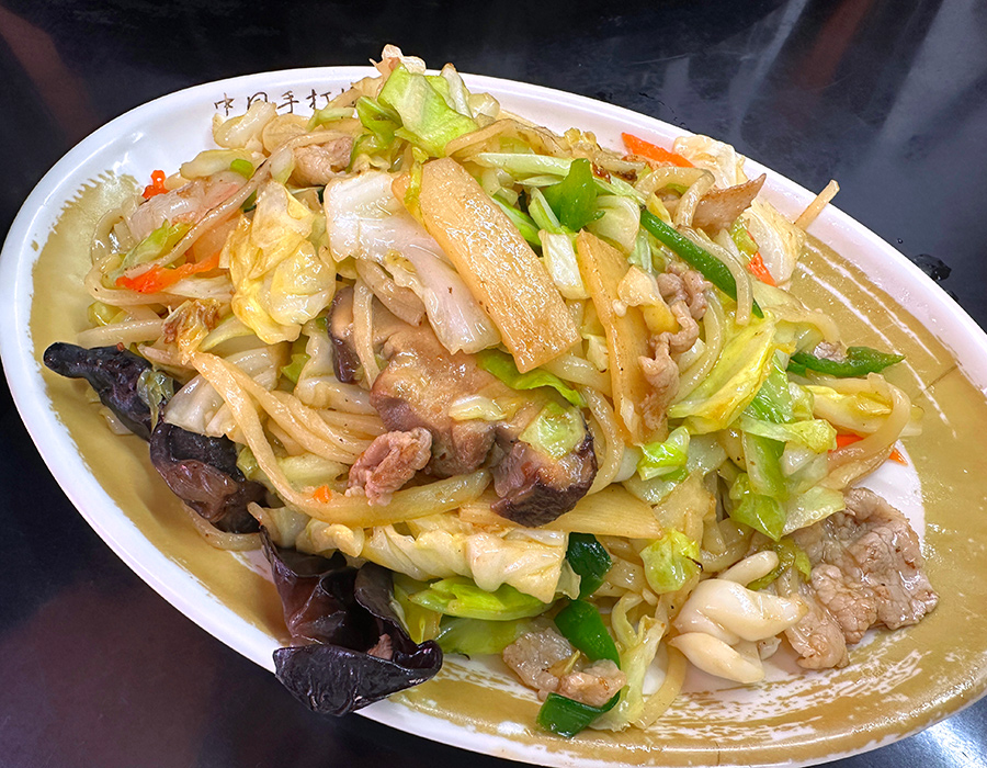 私がここで注文するのは、こちらの「五目焼きそば」。これ一択。