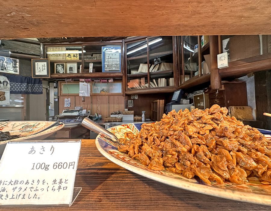 お店の奥で袋詰めを行っていたため写真が取れなかったのですが、他ではあまりみかけないマグロの佃煮をお土産に購入。実は母がここのマグロの佃煮が好きなんです。