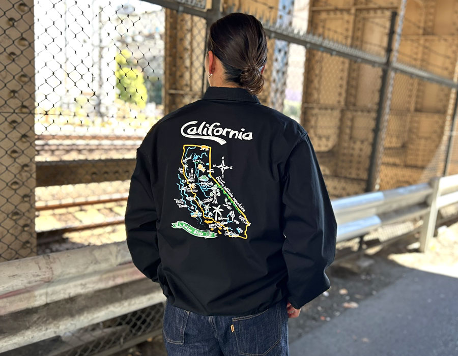 プリントはKOMY氏描き下ろしのカリフォルニアマップのグラフィックが半ラバープリントで左胸とバックに施されています。