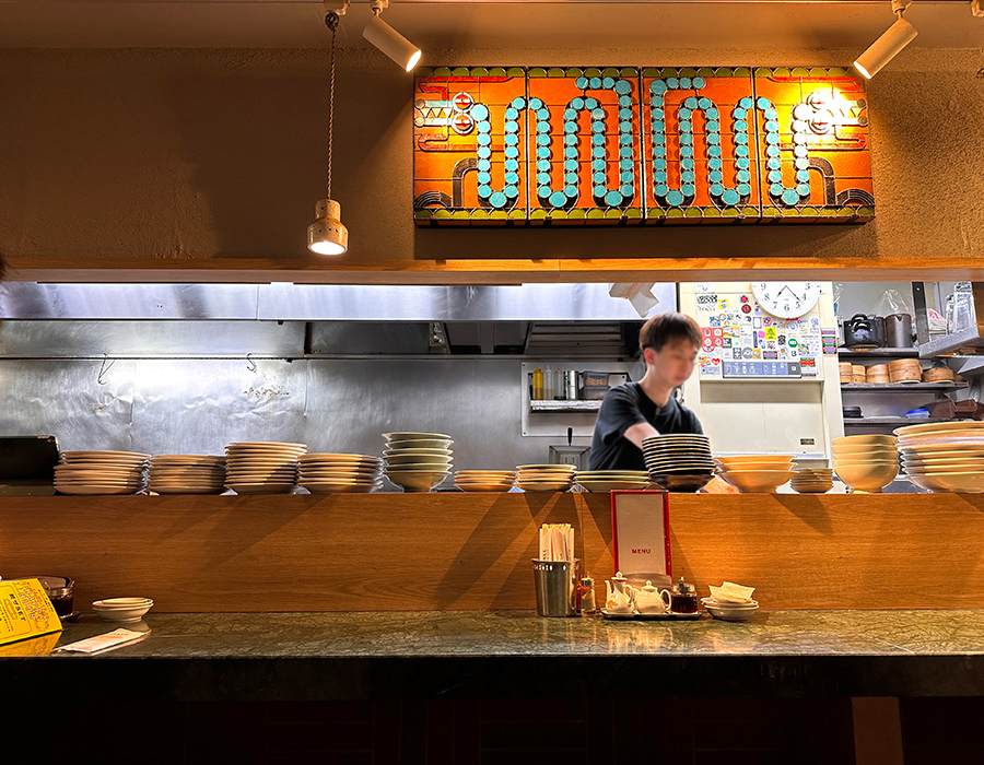 表の看板やビニールシートで覆われたテラス席、店内のカウンターの雰囲気もカジュアルで良い感じです。
