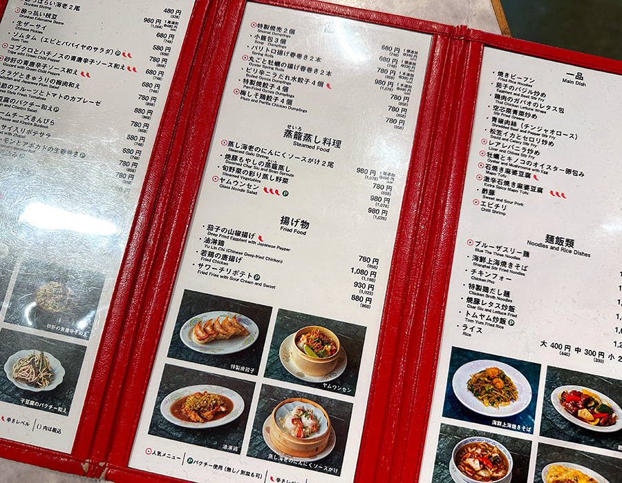 一般的な中華料理はもちろんですが、トムヤム炒飯やフォーなどエスニック系も揃っているメニューの幅広さもポイント。