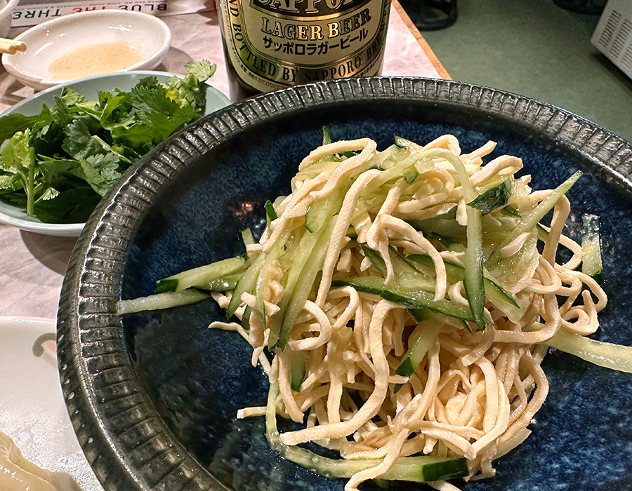 食べたいメニューがありすぎて悩みましたが、まずは大好きな「干豆腐のパクチー和え」。