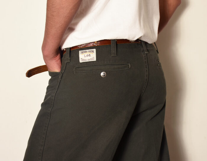 生地と同じくヴィンテージのフリスコパンツの雰囲気はそのままにワタリ、裾幅などを調整。