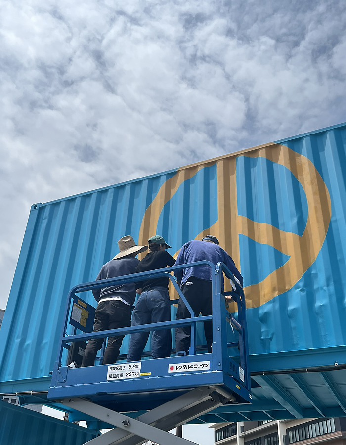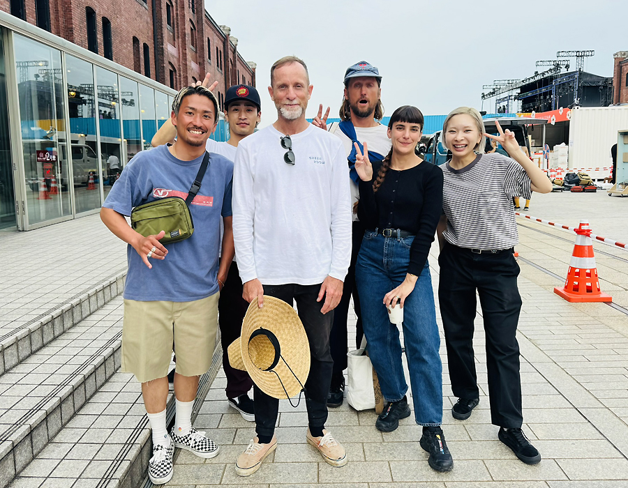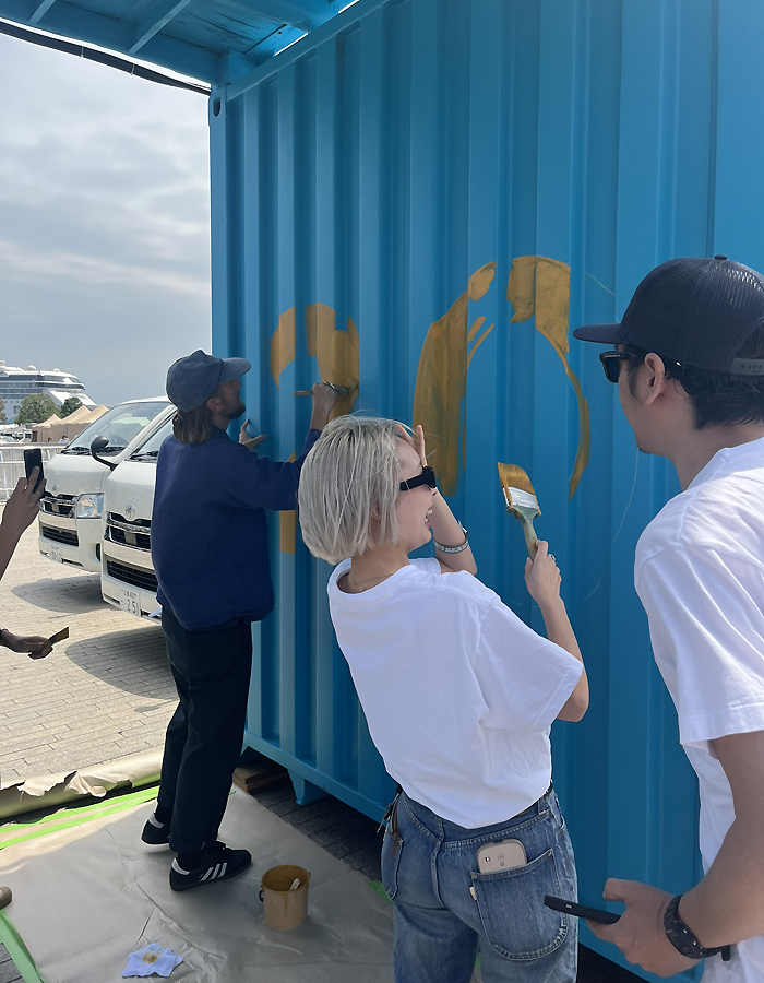 会場の準備を終え正面エントランスに目をやると、なんと開場1時間前に昨年もお世話になったJEFFさん、TY WILLIAMSさん、JASMINE PARSIAさんがコンテナにペイント中。