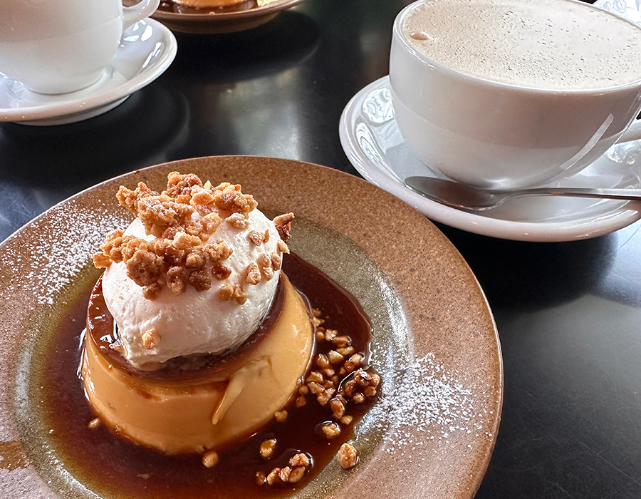 カラメルソースとトッピングのクランブルには富ヶ谷の人気コーヒーショップ「Fuglen Tokyo」のコーヒーが使われています。