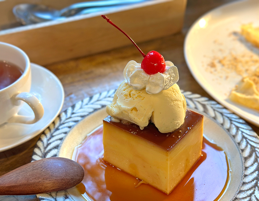 「うさぎ館 𝐜𝐚𝐟𝐞 𝐝𝐮 𝐥𝐢𝐞𝐯𝐫𝐞」には、クレープだけでなく昔ながらの固めプリンもあります。