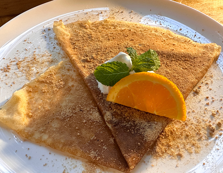 ここのクレープはカルピスバターとお砂糖で味わうシンプルクレープ。
