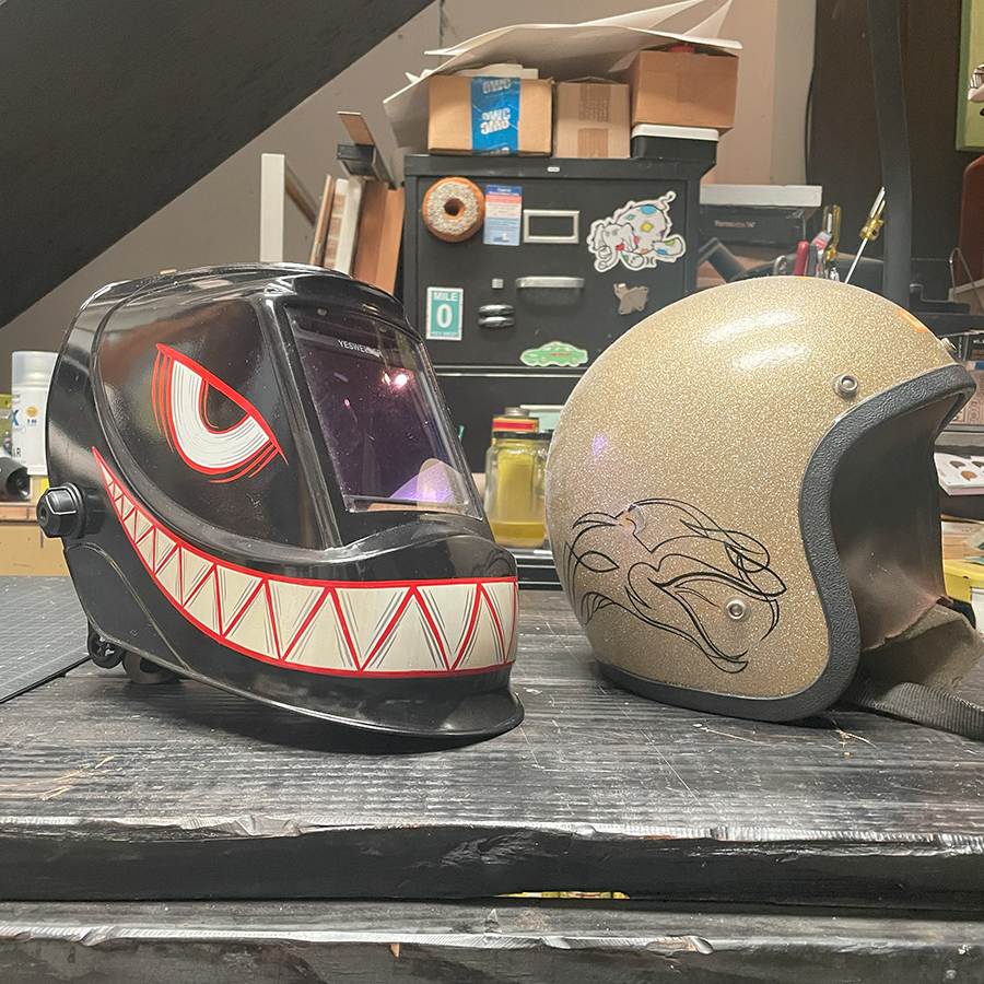 何気なく置いているヘルメットもいい感じにカスタムされていて流石の仕上がり。