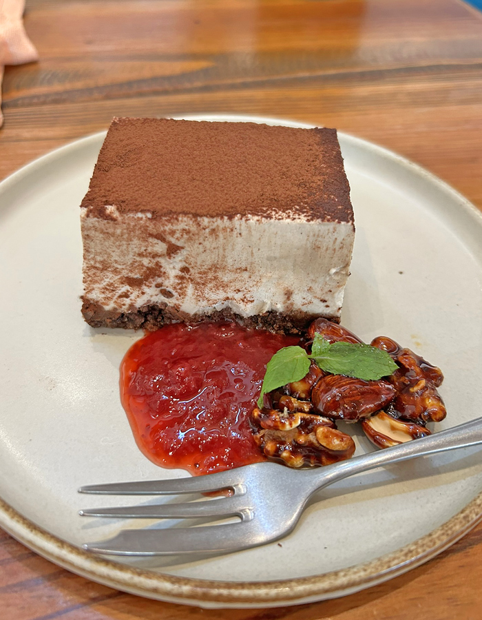 デザートは「グルテンフリーのティラミス イチゴのソース」を。