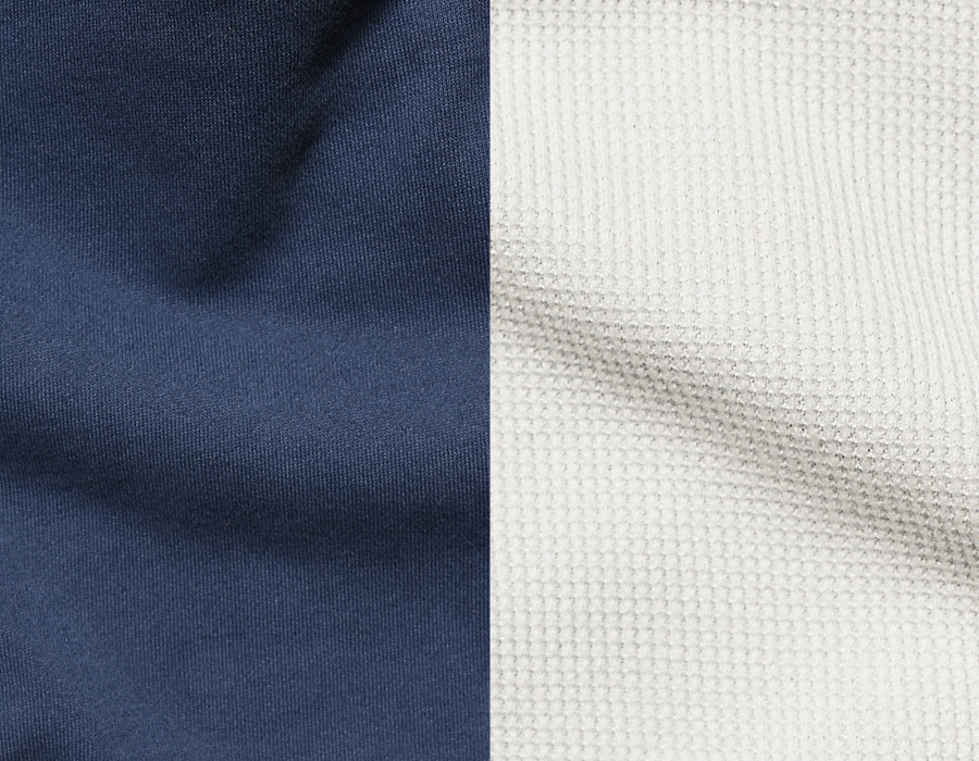 どちらの生地も雰囲気はそのままながらヘビーになりすぎないように程よい厚みのスウェット生地とサーマル生地を使用しました。