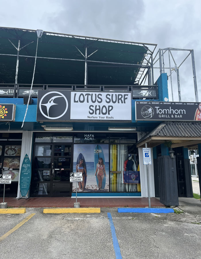 やってきたのはグアムでも老舗のサーフショップ「LOTUS SURF SHOP