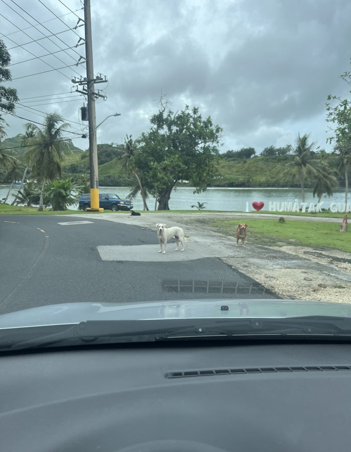 途中野生の牛とたくさんのワンチャンがお出迎え(笑)
