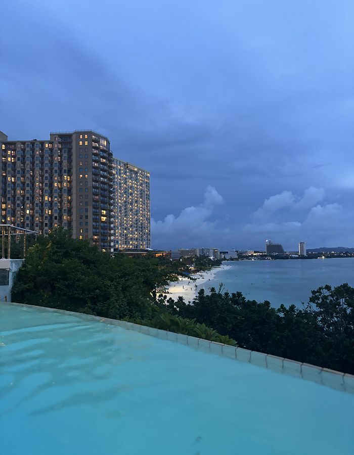 ホテルに着いたのが夜だったので全然気づかなかったのですが、部屋はオーシャンビューでかなりいい景色。