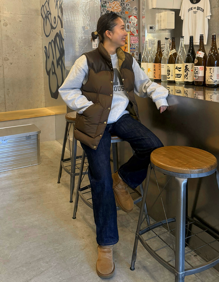 寒がりなのでダウンを着るなら袖まで欲しいと思っていたのですが、実際に着てみると身体の中心が暖かいだけでも全然違いますね。