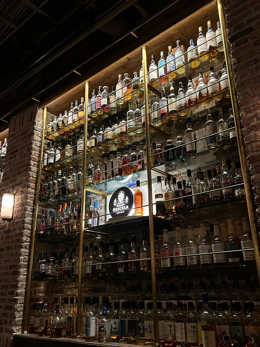 店内の壁面は全てこの状態、1300種類の世界のウイスキーが揃っています。