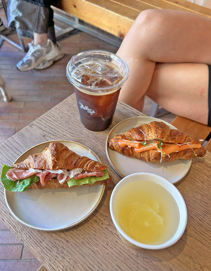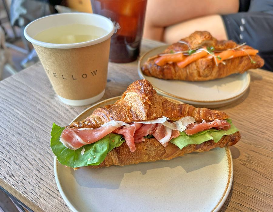 私は生ハムとルッコラが入ったクロワッサンとホットレモネードをオーダー。