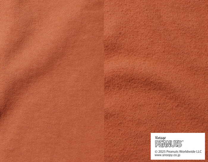 前回は定番の米綿のスウェット生地を使用したのですが、今回はさらにビンテージのSNOOPYスウェットボディをイメージしてリサイクルコットンのスウェット生地を使用しました。