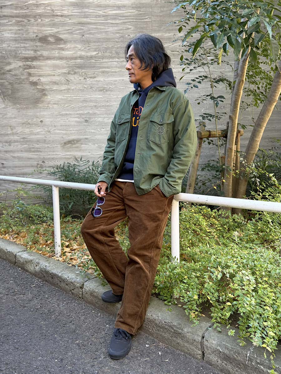 中に着たスウェットは年末に発売したロゴフーディー。生地はSDオリジナルの中では中肉位のUS COTTON。