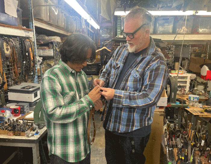 7月展のウォレットのスタッズ加工も仕上がっていましたので検品しながらピックアップ。