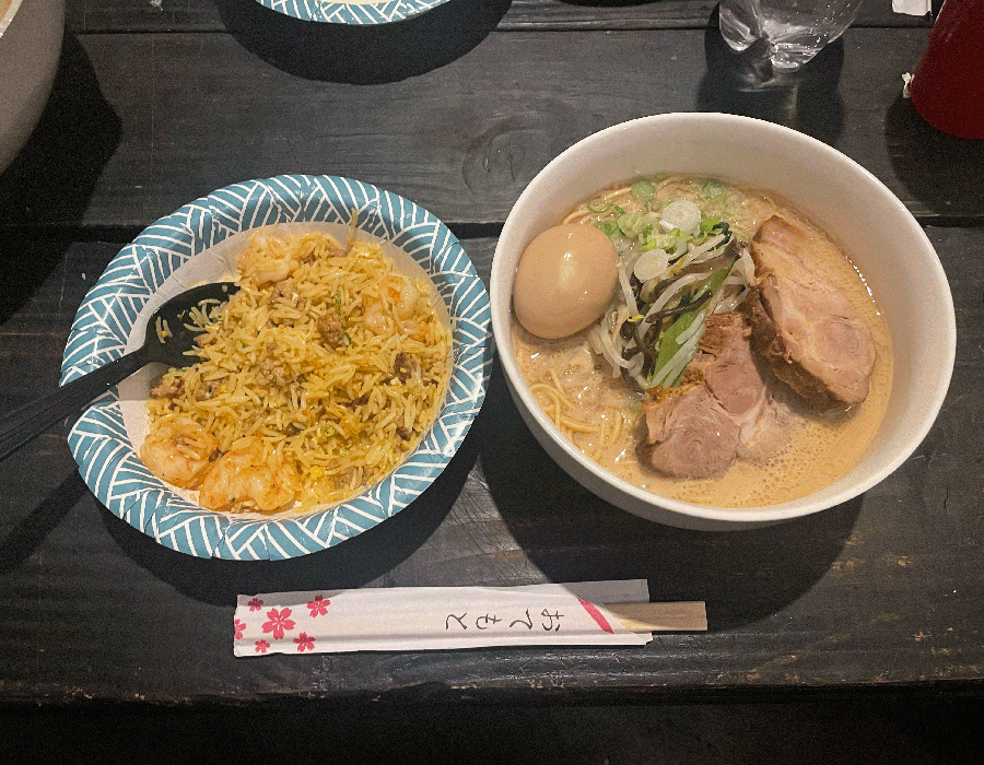 ラーメンに合わせてカレー風味のエビチャーハンも作ってくれて最高すぎます。