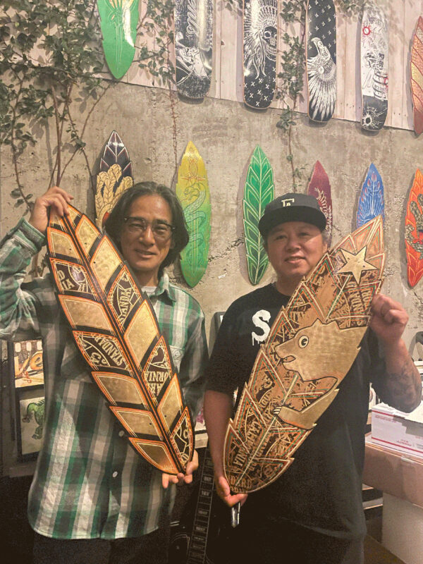 最後には昔リリースしたスケートデッキをカスタムしたスペシャルなデッキもお土産にいただき感無量。