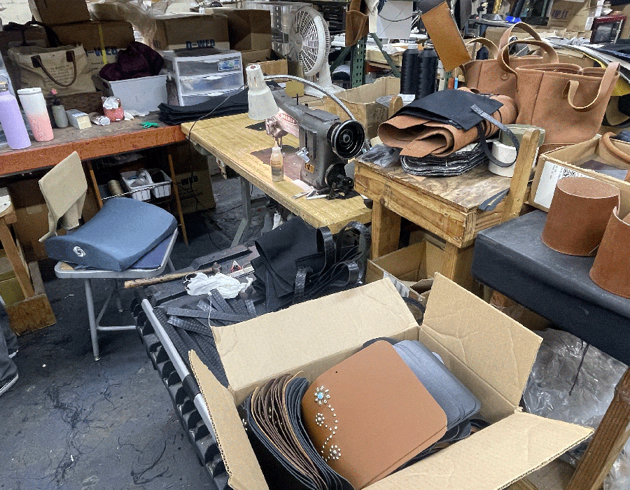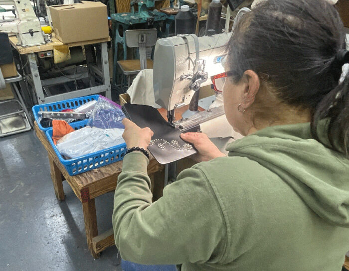 ハードなレザーの工業製品から革小物まで幅広く加工しているこちらの工場。