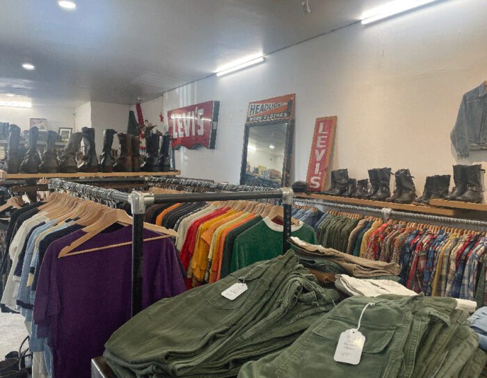 ショールームの古着は安定した品揃えで相変わらずの賑わい。