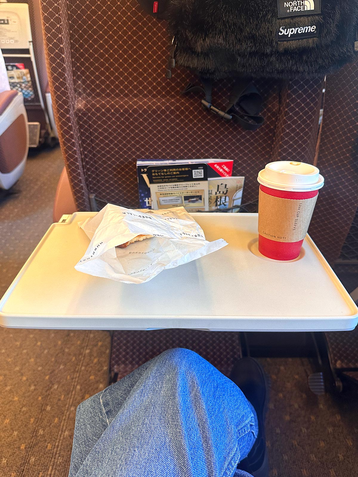 いつものパン屋さんで購入した朝食をいただきながら、快適なグリーン車の旅がスタート。