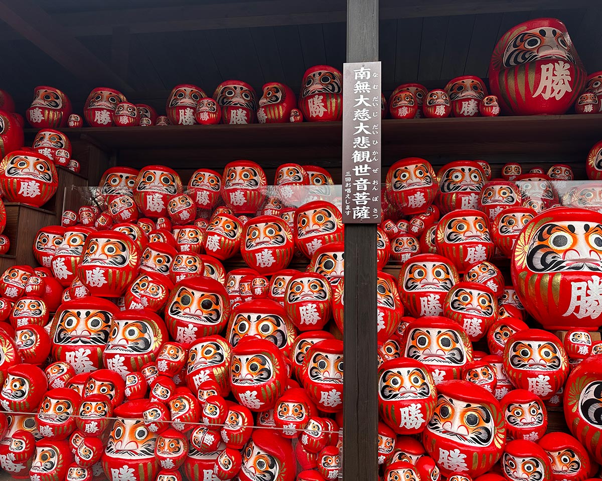 境内に並ぶ無数の「勝ちダルマ」。