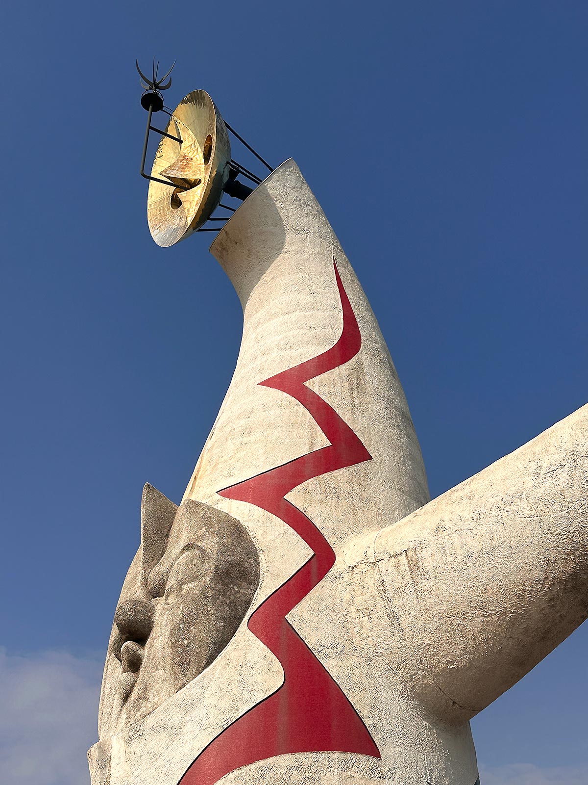 中央お腹部分にある太陽の顔は「現在」を、てっぺんにある黄金の顔は「未来」を、背面の黒い太陽は「過去」を表しているそう。