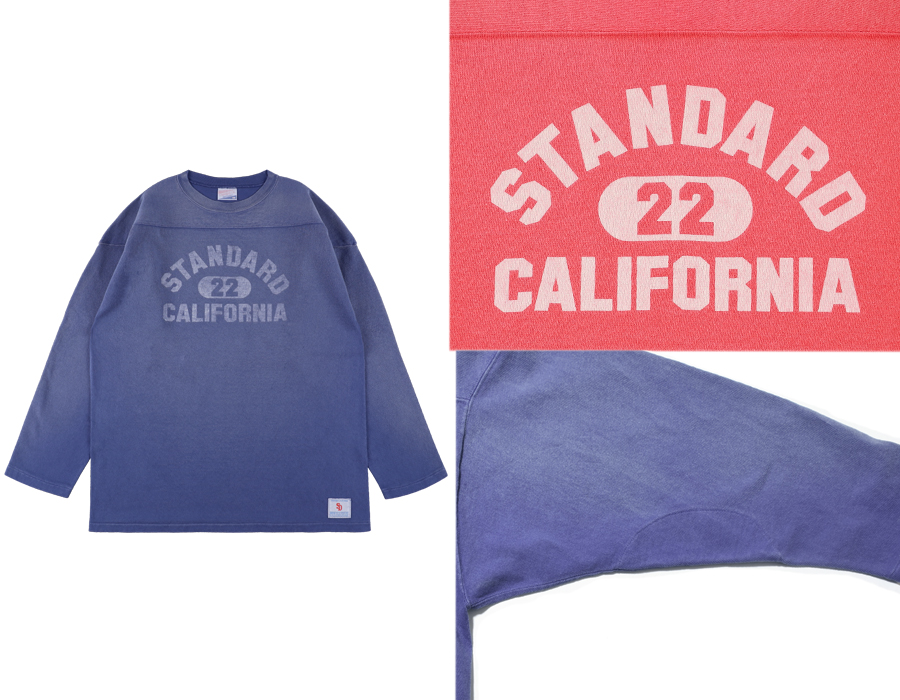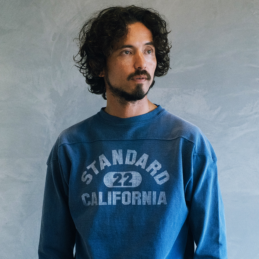 その雰囲気を少しでも表現できればと思い、今回はStandard CaliforniaのエッセンシャルアイテムでもあるフットボールTとスウェットの2型に落とし込みました。